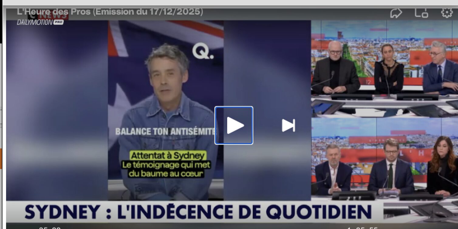 Ainsi avez-vous osé honteusement, irrévérencieusement, scandaleusement, indignement, ignoblement, voire de la façon la plus méprisable que l’on pouvait imaginer, rire aux éclats en vous moquant de l’anglais de ce témoin de la… tuerie ignominieuse sur une plage d’Australie où l’un des terroristes islamistes antisémites -votre humour est si abject que je le répète- a visé volontairement avec son arme à lunette une gamine d’une dizaine d’années qui, en outre, s’est sentie mourir puisqu’elle n’est pas décédée immédiatement !!! Et vous, vous trouvez intelligent, subtil, de faire rire votre entourage, des téléspectateurs parmi vos habitués, mais certainement pas tous ! Mais des fidèles de votre émission, vous avez dû en perdre après une telle séquence… Dont certains à tout jamais…