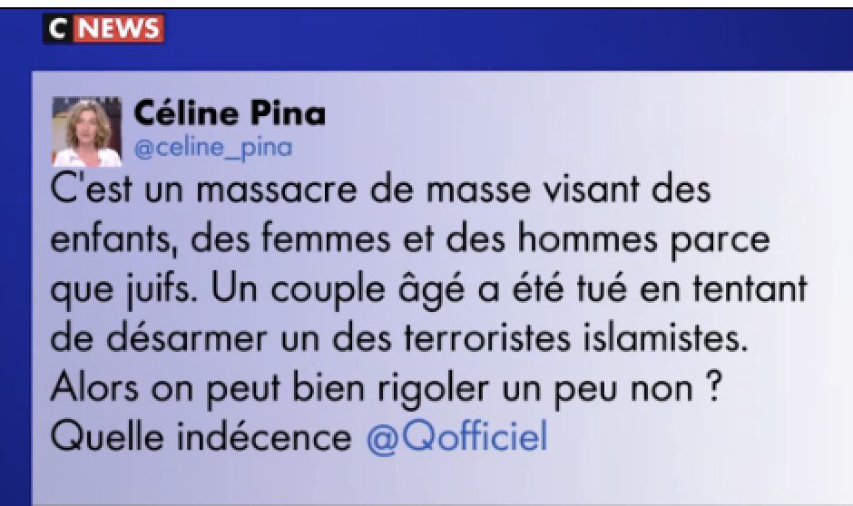 « C’est un massacre de masse visant des enfants, des femmes et des hommes (…) Alors on peut bien rigoler un peu non ? Quelle indécence ! »