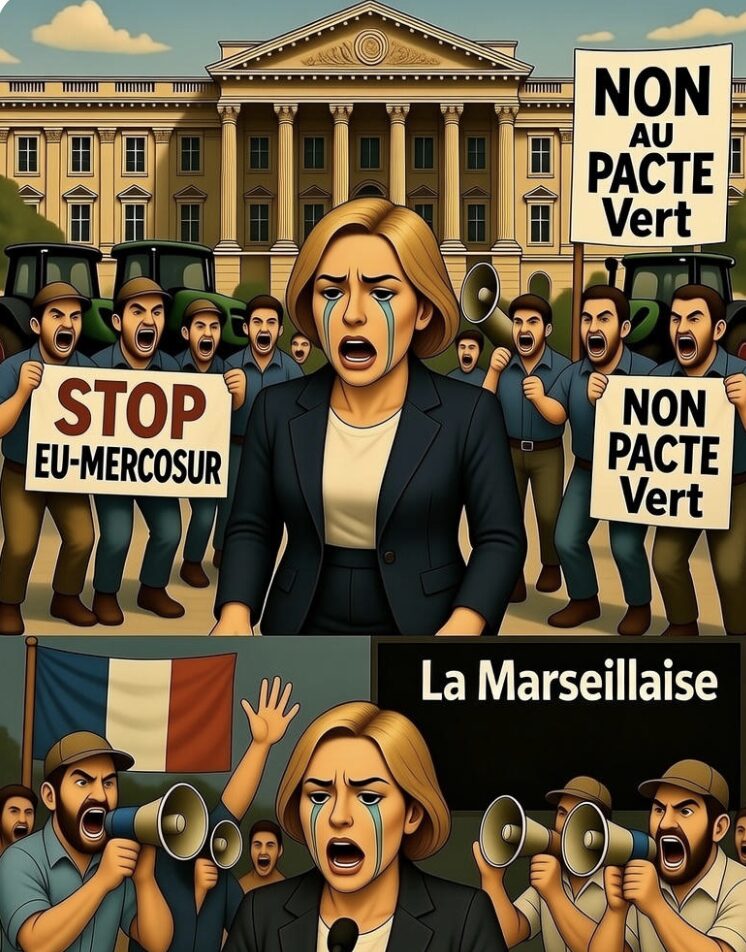 Et il n’a pas tort. La grande opposante au Mercosur, qui clame haut et fort défendre les cultivateurs français, s’est abstenue lors du vote de censure contre Ursula von der Leyen en 2024 et a même offert un bisou amical à la présidente de la Commission – celle-là même qui pousse cet accord désastreux pour notre agriculture.