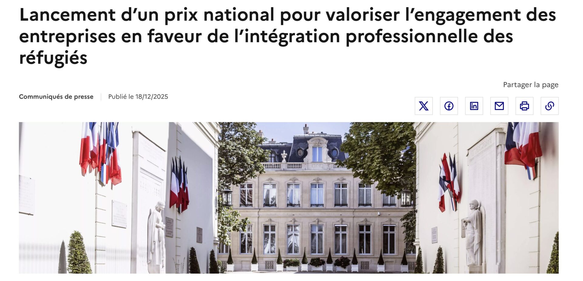 Le 18 décembre 2025, Laurent Nuñez, ministre de l’Intérieur, a inauguré le Prix Entreprises avec les Réfugiés.