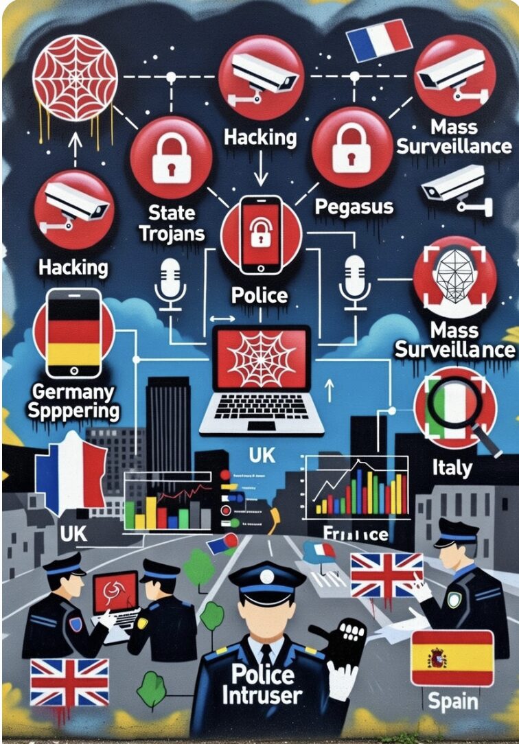 Le Royaume-Uni est depuis longtemps le leader européen en matière de surveillance numérique, avec l’Investigatory Powers Act 2016, surnommé « Snoopers’ Charter » (charte des fouineurs). Cette loi autorise les agences de renseignement (GCHQ, MI5, MI6) et la police à déployer des chevaux de Troie étatiques via le hacking à distance d’ordinateurs, smartphones et tablettes pour capter données, activer micros/caméras, ou contourner le chiffrement…