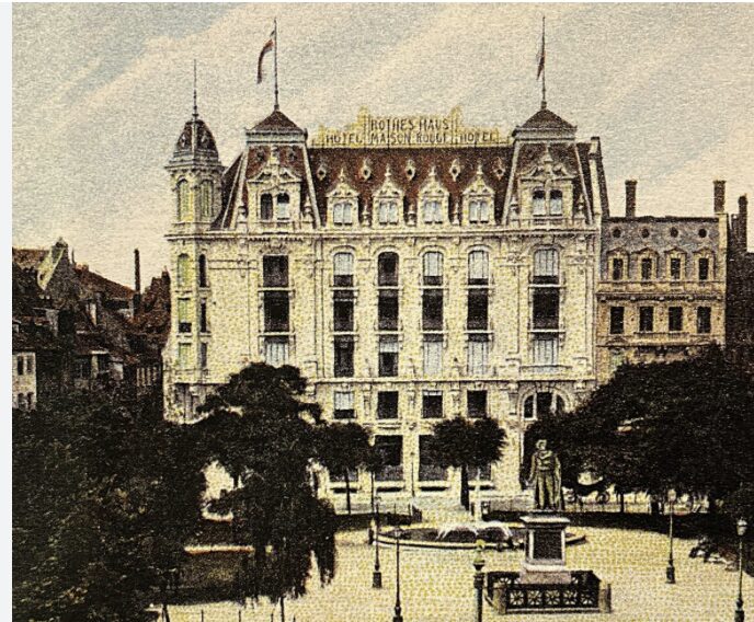 La Maison rouge à Strasbourg , ancien hôtel situé au 22 place Kléberà Strasbourg. Le bâtiment historique fut ravagé par un incendie en 1970 et détruit en 1973.