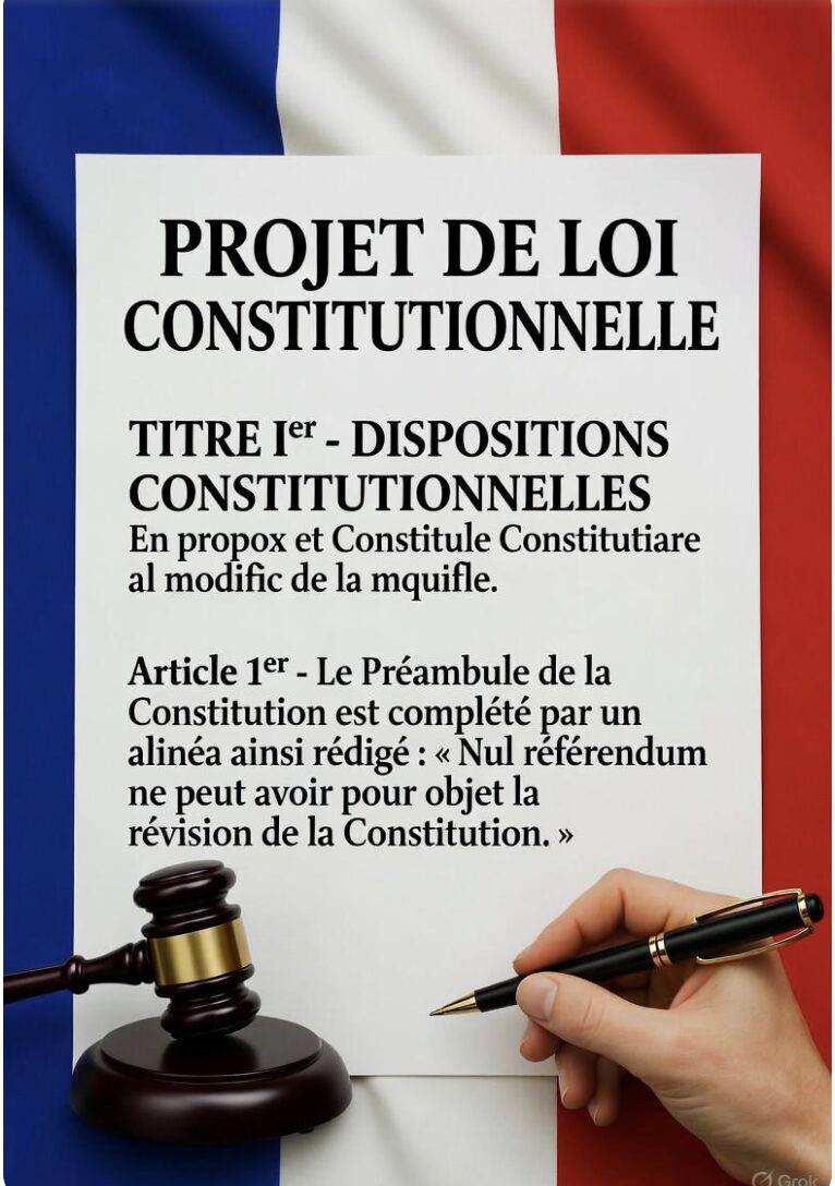 En effet, je viens de découvrir un projet de loi constitutionnelle déposé par la gauche, toutes tendances confondues, et qui a pour but de SUPPRIMER LA POSSIBILITÉ DE RÉFÉRENDUM pour toute modification de la Constitution.