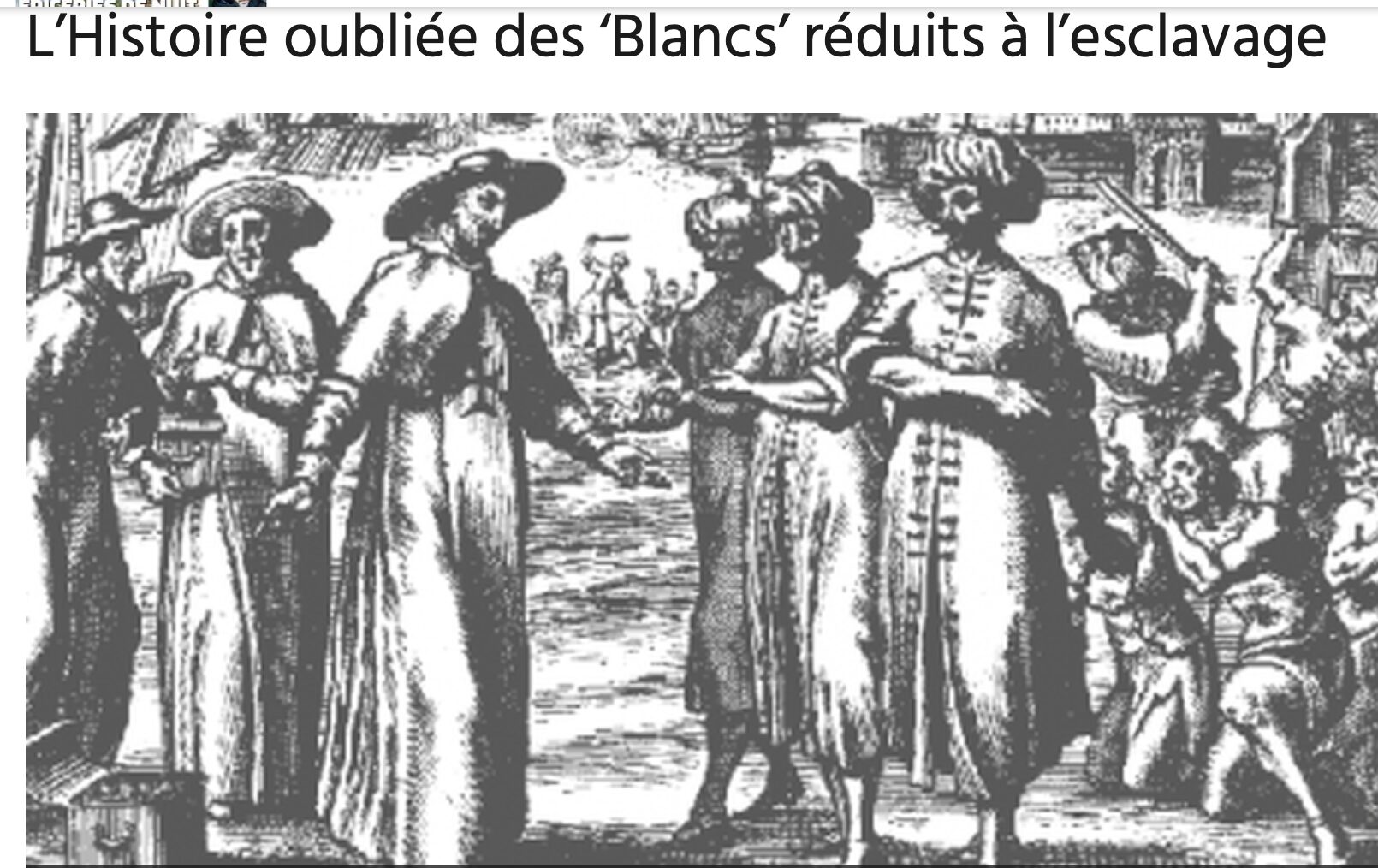 La traite des esclaves de Barbarie est amplement historiographiée : les marchés d’esclaves du littoral maghrébin, dont l’actif marché d’Alger, se livrèrent pendant des siècles à un lucratif commerce d’êtres humains, tant Africains subsahariens qu’Européens. L’Afrique noire paya un tribut particulièrement douloureux à ce commerce arabo-musulman qui demeure mal connu du grand public. Pourtant, dès 2004, le livre d’Olivier Grenouilleau, Les Traites négrières (Gallimard), attirait l’attention sur l’ampleur de cette traite arabo-musulmane que l’historien algérien Malek Chebel qualifie de « tabou bien gardé ».