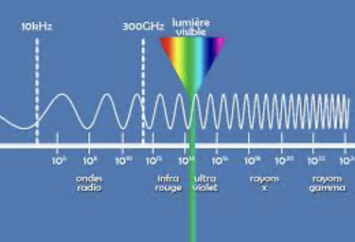 le spectre visible (la lumière perçue par l’œil humain) ainsi que les ondes radioélectriques les plus élevées que l’on appelle les micro-ondes.
