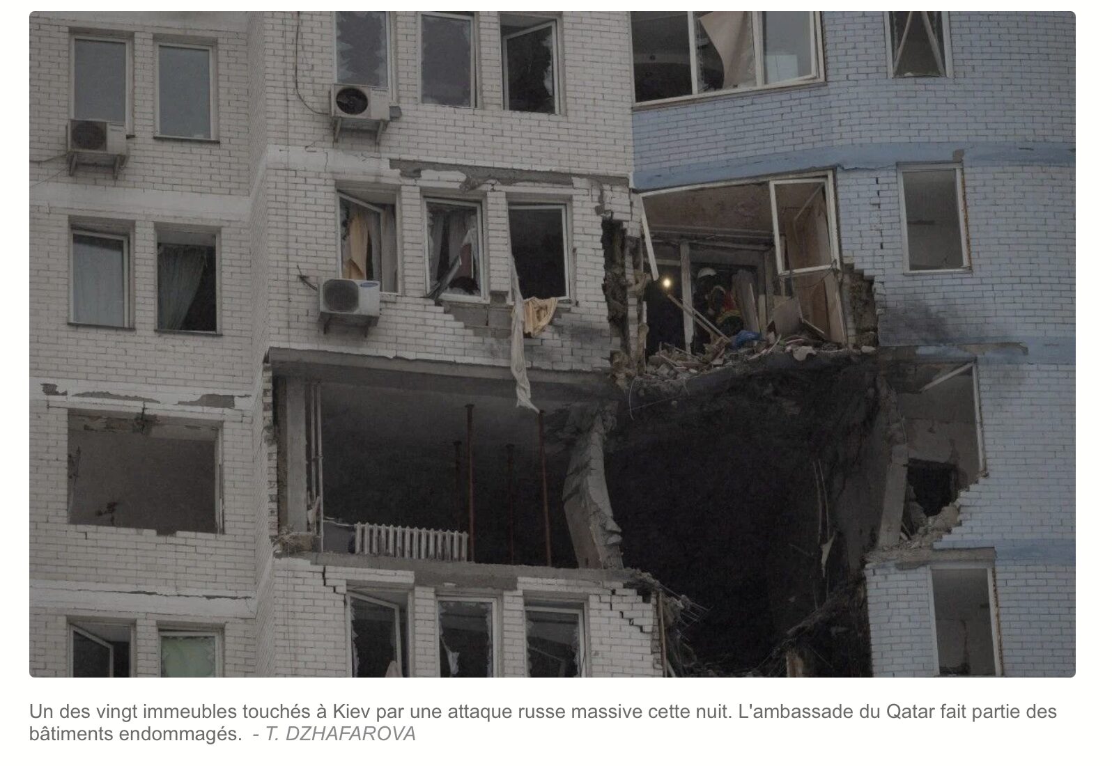 Ce qu’on sait des conséquences probables : des immeubles touchés à Kiev, un certain nombre n’ont plus de chauffage alors qu’il fait moins 8, il y aurait quelques morts. L’Ukraine accuse la Russie de viser délibérément les civils et l’énergie. Je ne sais pas pourquoi j’ai infiniment plus confiance dans la parole de Poutine que dans celle de Zelensky…