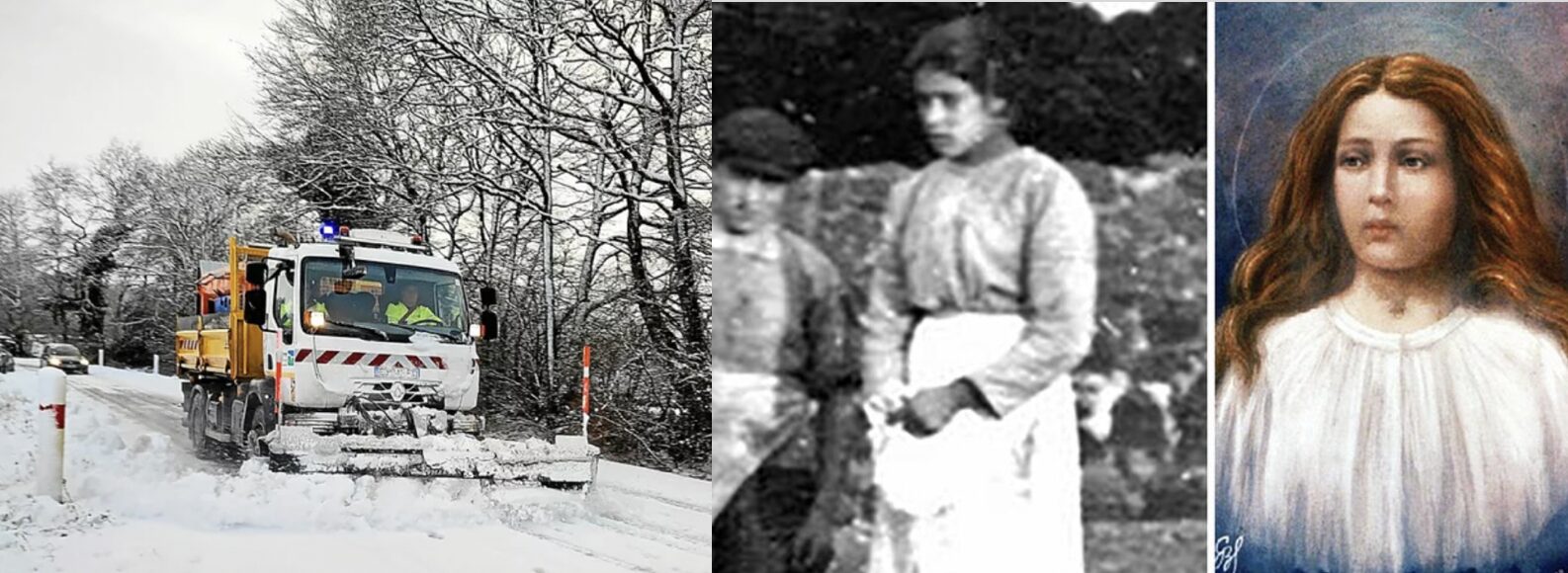 Je suis choquée de voir une tempête mise sous l’égide d’une petite sainte, violée en plus... Et une sale tempête en plus, qui a immobilisé presque toute la France (il.y a quelques dizaines d’années – des siècles donc – pépé prenait sa 2 CV, mettait une pelle dans le coffre, une bouteille de gnôle pour le moral, et hop, direction le boulot à travers la poudrière). Aujourd’hui ? Dès que Météo France sort le code jaune « risque de neige possible « , les préfets déclenchent le niveau Ébola climatique : écoles fermées, télétravail obligatoire, trains annulés, et les supermarchés dévalisés de baguettes et de papier toilette... La recherche du risque zéro est-elle la volonté de préserver la santé de nos concitoyens à qui on fait manger de la merde importée (vive le Mercosur) et des larves de cafards, et qu’on vaccine à tour de bras avec des vaxxins expérimentaux ?