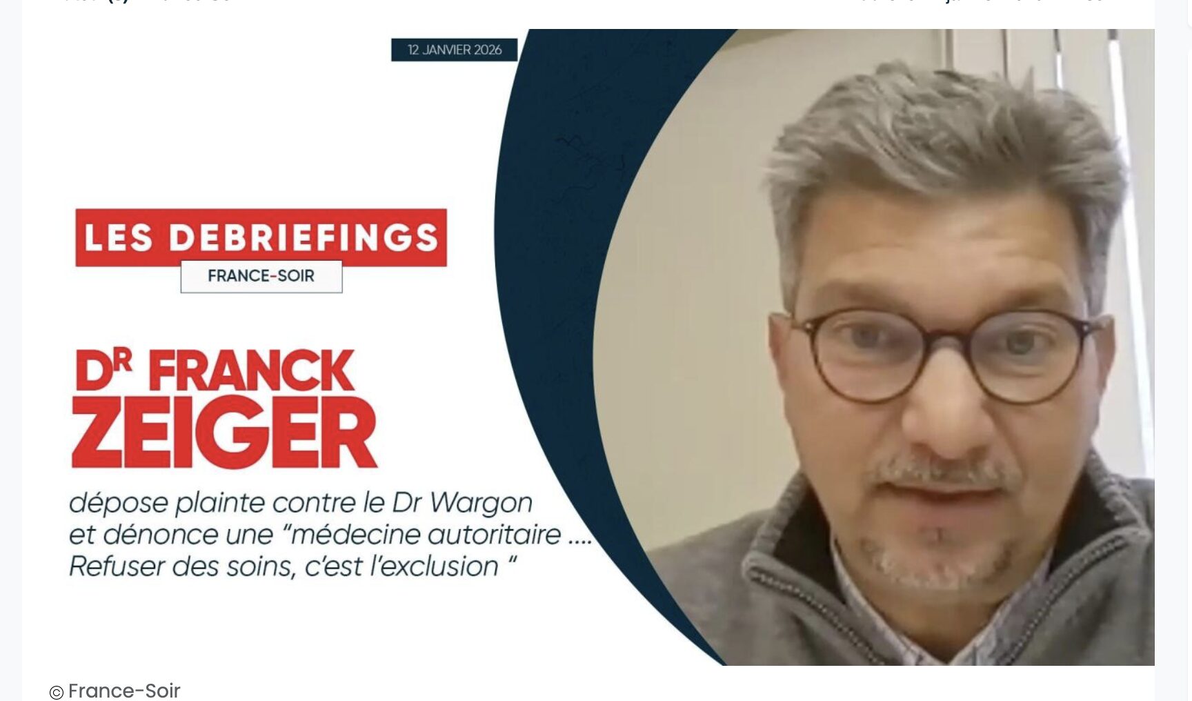 Dans un débriefing vidéo, le Dr Franck Zeiger, médecin référent santé du Mouvement Politique Citoyen, annonce avoir saisi le Conseil de l’ordre contre le Dr Matthias Wargon, chef des urgences de l’hôpital de La Fontaine à Saint-Denis, après des propos tenus fin décembre à la télévision. Selon Zeiger, Wargon aurait affirmé à propos des plus de 65 ans non vaccinés contre la grippe : « On ne les reçoit pas à l’hôpital. » « On est forcément choqué », réagit Zeiger. « C’est comme si on ne recevait pas les diabétiques parce qu’ils mangent du sucre. C’est une attitude évidemment inacceptable. »