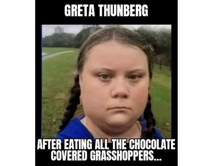 Greta Thunberg après avoir mangé toutes les sauterelles recouvertes de chocolat (chapulines)..