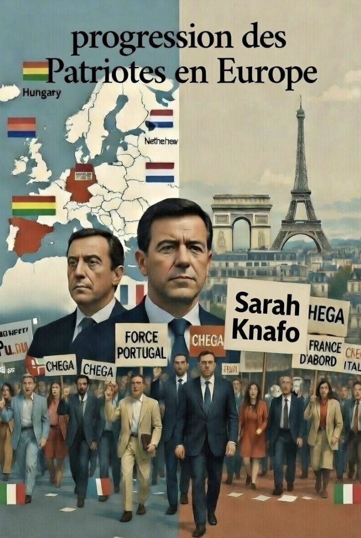 Je fais un parallèle avec ce qui se passe en France où une Marine serait donnée vainqueur pour 2027 (même si je n’y crois pas, je crains une manipulation électorale mais c’est une autre histoire) et où un symbole identique à Chega  émerge à Paris. Sarah Knafo, eurodéputé et figure montante de Reconquête qui était quasi inconnue du grand public il y a deux ans. Or, depuis l’annonce de sa candidature à la Mairie de Paris, avec un programme mettant l’accent sur l’austérité budgétaire, la réduction des impôts locaux, la sécurité et la lutte contre l’insécurité. on n’entend plus  parler que d’elle et ses rivaux pâlissent chaque jour davantage. Non, Orban n’est plus seul en Europe. Que ce soit au Portugal, à Paris, aux Pays-Bas, en Autriche… sans parler de la montée indiscutable de l’AfD en Allemagne on voit qu’il se passe des choses. Des personnalités dites de droite ou plutôt patriotes passent à la télé, sont invitées dans les débats et voient leur potentiel électoral augmenter régulièrement, au grand dam des Macron, Merz, Der Leyen… Partout  les partis patriotes gagnent des parts « du marché », deviennent des forces d’opposition majeures, voire des partenaires (obligés) de gouvernement.