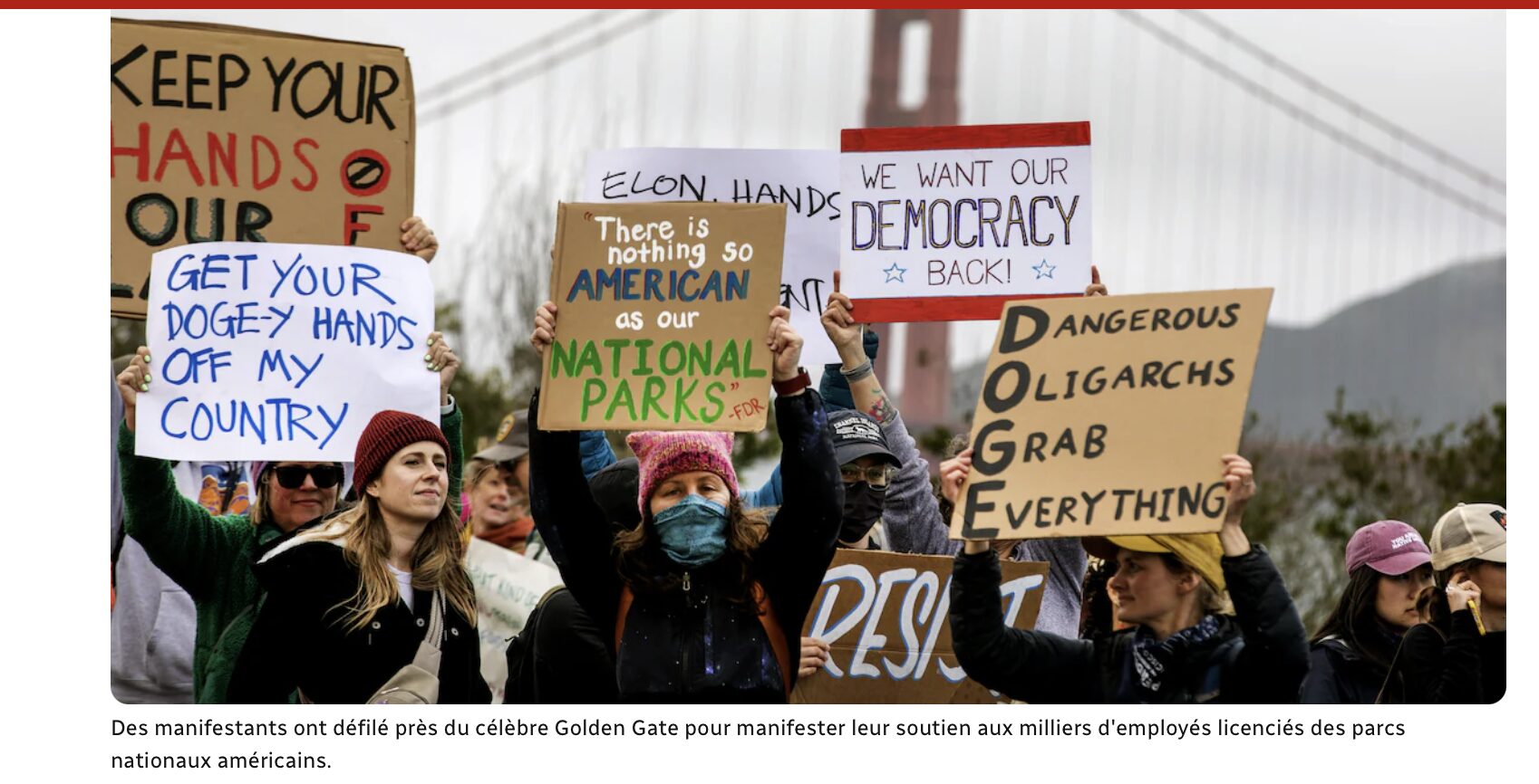 « Une foule de gens (…) pour manifester leur soutien aux milliers d’employés licenciés des parcs nationaux américains. »