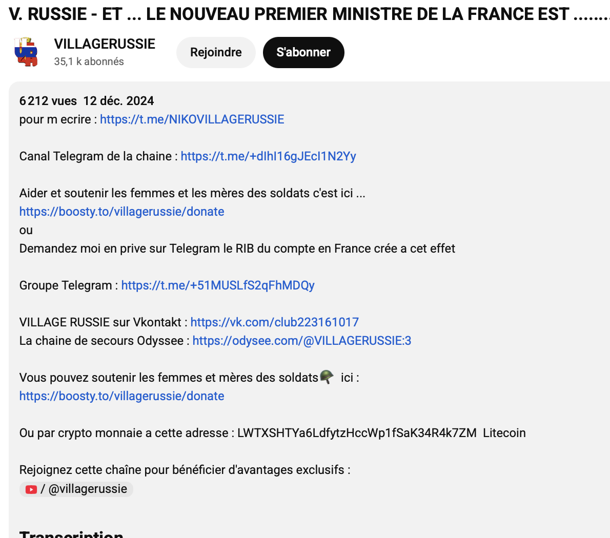 Il faisait régulièrement des videos YouTube, parlant de la situation politique en France et il récoltait (soi-disant ?) de l’argent pour aider à soigner des enfants en Russie ou pour aider les soldats russes et leurs familles