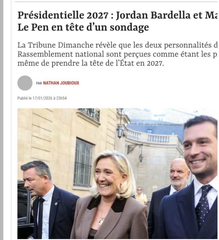 Comme quoi, moins de 2% de différence, ont déjà fait changer la face de la planète… Or le dernier sondage publié le 17 janvier par Le Point, donne à Bardella 35% et à Marine Le Pen 33% : donc 2% de moins qui pourrait lui faire perdre une élection présidentielle que Bardella aurait remportée !