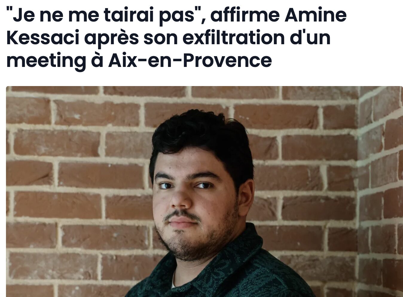 Le 5 février 2026, Amine Kessaci, militant écologiste et anti-narcotrafic marseillais de 22 ans, a été brusquement exfiltré d’un meeting politique à Aix-en-Provence où il était invité par le député PS Marc Pena.