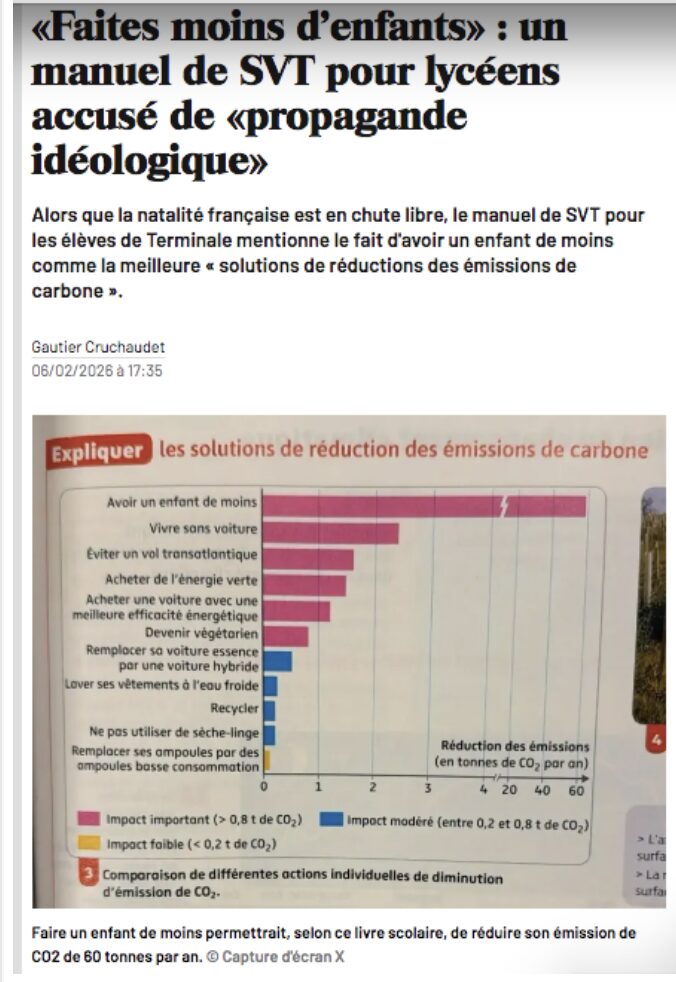«Faites moins d’enfants» : un manuel de SVT pour lycéens accusé de «propagande idéologique» (1)