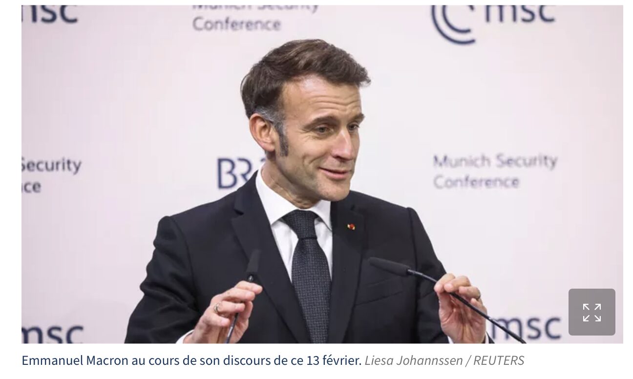 Macron, se voulant un terrifiant président-jupitérien, a encore frappé à la Conférence sur la sécurité de Munich le 13 février 2026, avec un discours qui ressemble moins à une stratégie diplomatique qu’à un one-man-show délirant.