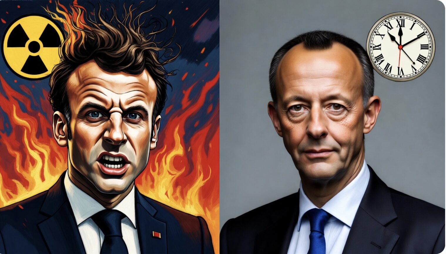 Bref, Macron joue les pyromanes en smoking, prêt à transformer l’Europe en barbecue nucléaire pour son rêve de grandeur. Merz, lui, arrive avec l’extincteur, le manuel de comptabilité et un air de « calmez-vous, on va pas mourir pour un ego« . L’un vend du rêve apocalyptique emballé dans l’audace européenne et l’autre du sparadrap sur une plaie ouverte, en murmurant restons dans l’OTAN, augmentons le budget, et prions .
