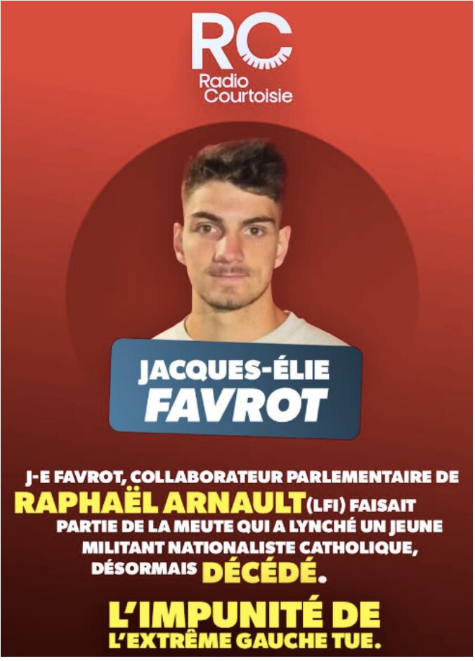 Ces rebuts de NOTRE SOCIÉTÉ devraient être condamnés à perpétuité réelle ! Ce qui ne sera pas le cas… En revanche, sinon la réclusion mais « l’exclusion à perpétuité », risque fort de sanctionner le jeu électoral aux dépens des LFIstes et ce ne serait que justice ! Ce serait l’une des conséquences de ce meurtre perpétré par LEUR service d’ordre… Donc de LEUR MEURTRE !