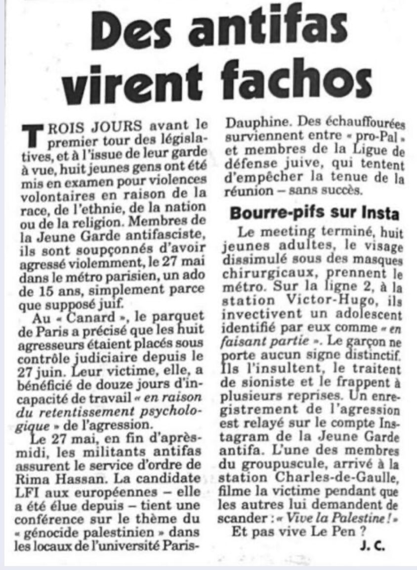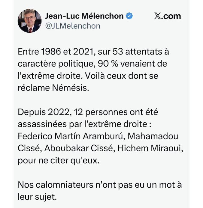 « Ils » prononceront fatalement la dissolution de Némésis pour faire bonne mesure avec la dissolution de la Jeune garde. Comme « ils » l’ont fait pour Génération Identitaire pour faire bonne mesure avec la dissolution du CCIF.