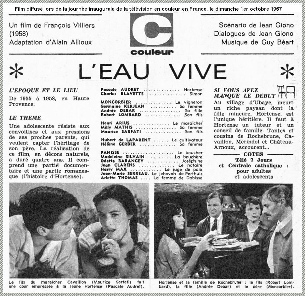 Coupure de presse de 1967 ici : l’arrivée de la télévision en couleur