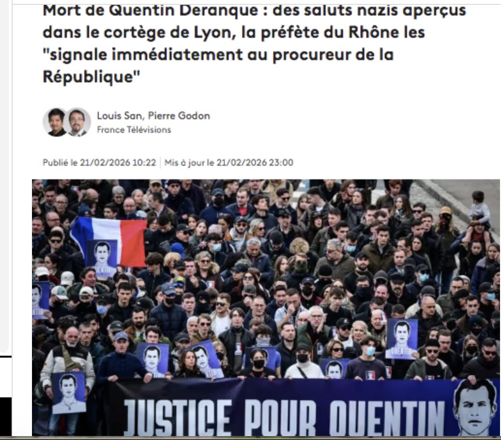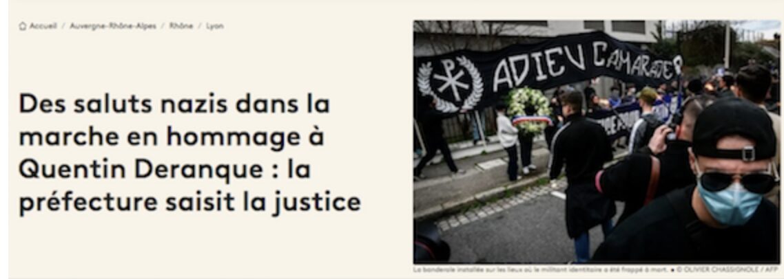 Dimanche, lors des Journaux Télévisés de 13 heures de nos principales chaînes de télévision française, TF1 et France2, après avoir annoncé que « DES saluts nazis » avaient été constatés samedi à Lyon lors du défilé en souvenir de Quentin, ces deux chaînes en ont diffusé « la preuve », et QUELLE PREUVE !