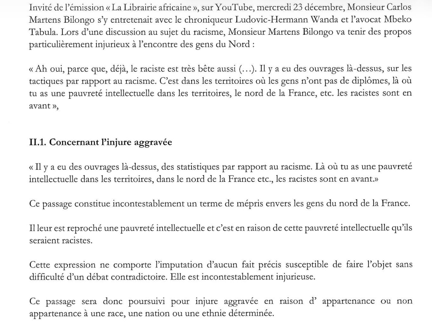 Résistance Républicaine engage donc une procédure contre le député LFI Bilongo pour ses propos racialistes, d’une part contre les gens d Nord :