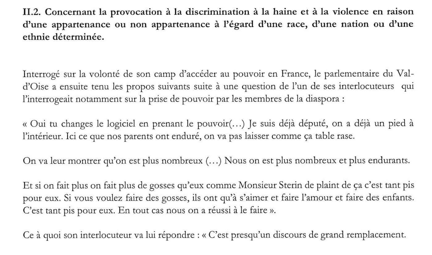 « Oui tu changes le logiciel en prenant le pouvoir(…) Je suis déjà député, on a déjà un pied à l’intérieur. Ici ce que nos parents ont enduré, on va pas laisser comme ça table rase.