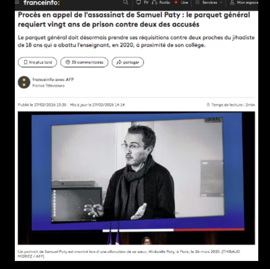 Outre les condamnations en novembre 2023 par le tribunal d’enfants pour association de malfaiteurs des cinq collégiens ayant révélé au terroriste quel était le professeur « coupable », les adultes sont passés en 2024 devant une Cour d’assises pour « complicité d’assassinat et association de malfaiteurs terroriste ». Verdict d’alors : huit prévenus ont été reconnus coupables dont la peine de 13 ans de réclusion criminelle pour Brahim Chnina, 54 ans…-père de la jeune fille accusatrice alors qu’elle n’avait même pas assisté à ce cours !- …et du prédicateur islamiste Abdelhakim Sefrioui, 66 ans.