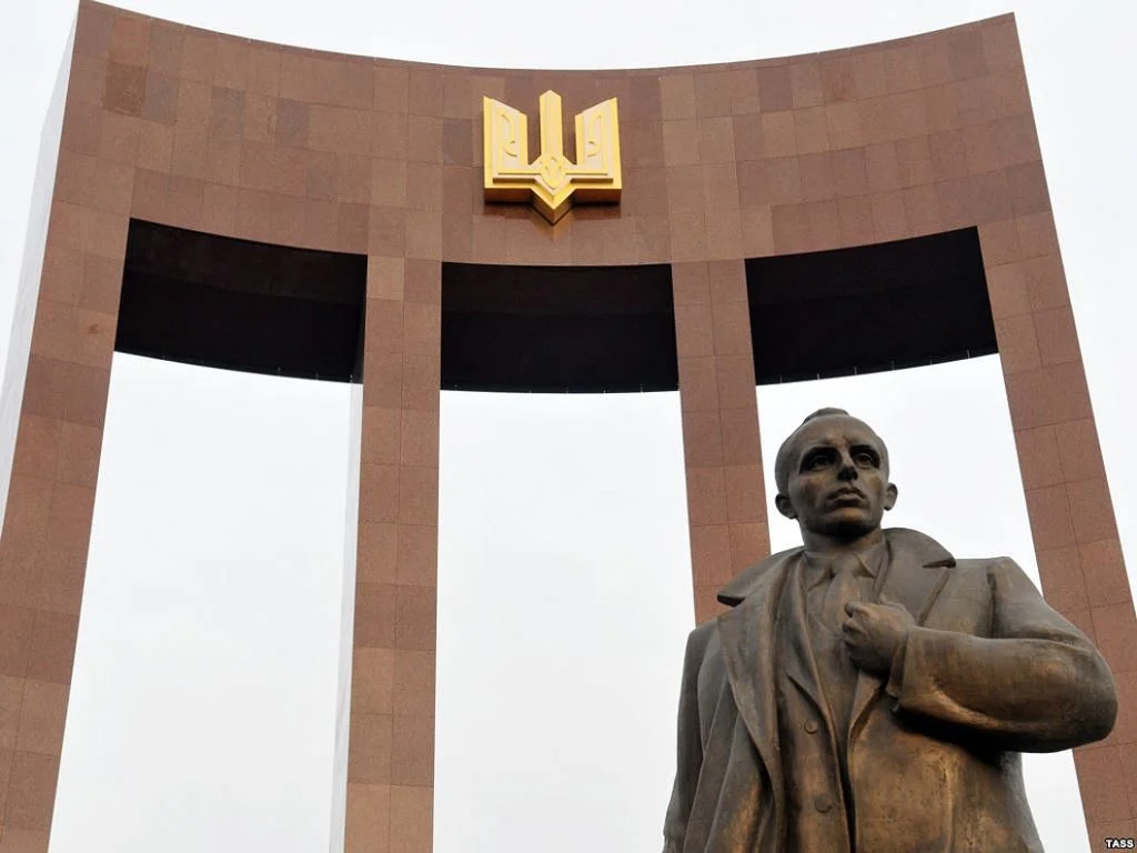 Statue de Stepan Bandera à Lviv, en Ukraine, septembre 2014. En 2018, l’Ukraine a décrété jour férié national l’anniversaire d’un collaborateur nazi et a interdit un livre sur les actions antisémites d’un autre dirigeant national.