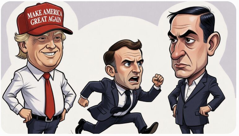 Imaginez la scène : Trump tweete des selfies avec Netanyahu, tous deux en train de siroter du vin de Judée, pendant que Macron, les joues rougissantes, pédale dans la semoule comme un cycliste en pleine montée du Tour de France sans vélo. « Regardez-moi, les gars ! J’ai des missiles ! Des vrais, attendez-moi ! » brame-t-il en envoyant des signaux aux pays musulmans. Oui, parce que dans sa quête éperdue d’existence, Macron n’oublie pas de faire un clin d’œil complice au Moyen-Orient : « Hé, les amis, je suis avec vous ! Contre ces deux-là, bien sûr. Moi, avec ma bombe, je suis le pacificateur ultime ! »