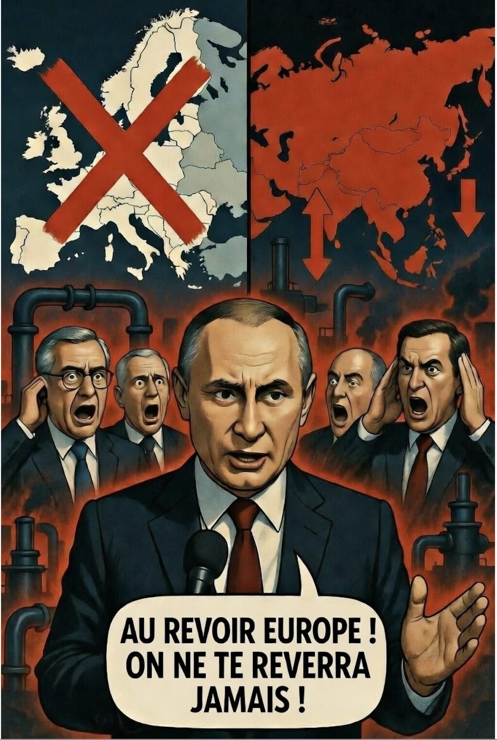 Classique Poutine, le nouveau Napoléon hélas pas français : transformer une menace subie en menace active, et faire passer l’Europe pour celle qui mendie encore un peu de gaz alors qu’elle crie « plus jamais » !