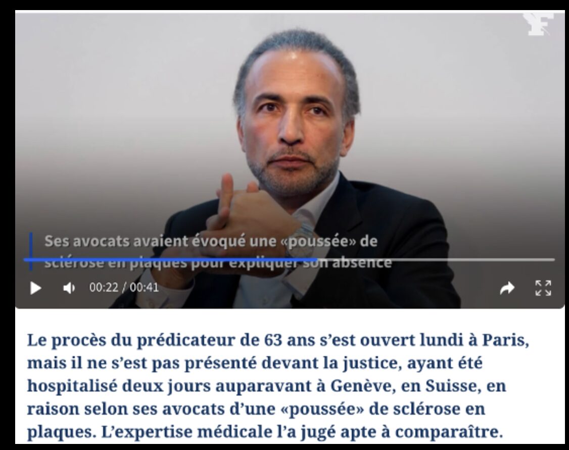 Donc, bien heureusement, sa santé va bien comme l’a confirmé Corinne Goetzmann, présidente de la cour criminelle départementale, en lisant le rapport des experts concluant à la «stabilité de la sclérose en plaques» dont souffre l’islamologue depuis plusieurs années, «sans signe de poussée récente» !