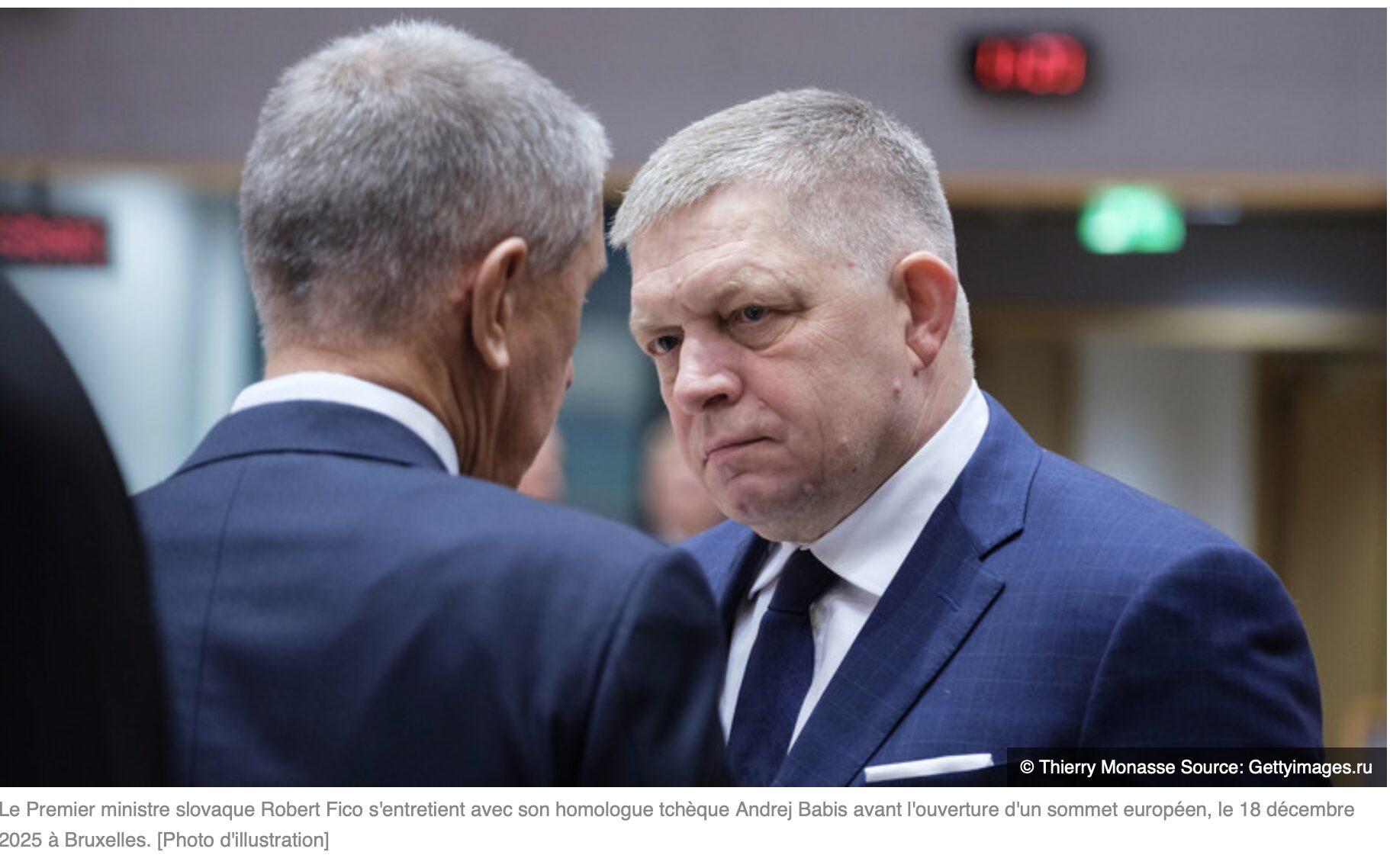 Robert Fico a déclaré que la Slovaquie était «prête à bloquer» à son tour le dernier prêt promis à Kiev par les Européens si le flux de pétrole via Droujba n’était pas rétabli. Zelensky tellement sûr de Der Leyen, Macron et toute la clique qu’il menace ouvertement de mort qui s’opposera au prêt… Silence radio à Paris comme à Bruxelles ! Le nazi fait la loi chez nous et personne ne bouge, par contre personne ne se gêne pour taper sur Trump !