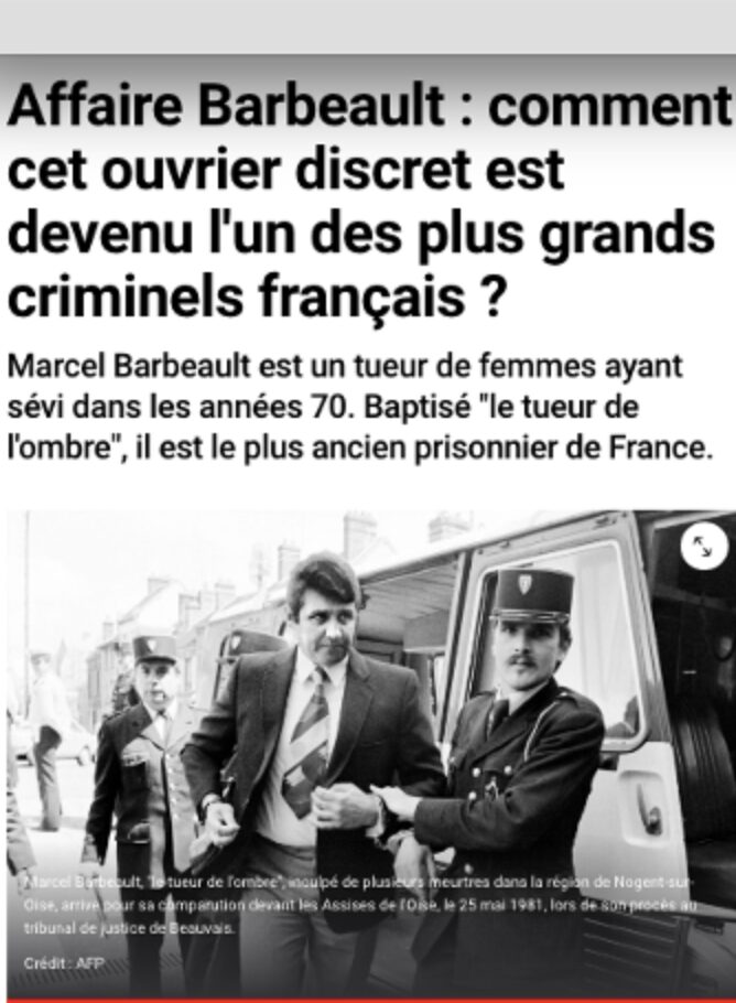 En effet, pour moi, le cas de Barbeault est LE CAS parfait qui me fait accepter l’abolition de la peine de mort… D’autant que, pour une peine de mort, il est impossible un jour ou un an ou dix ans après l’exécution de revenir à… zéro même au cas peu probable (mais ça arrive une erreur judiciaire ! En outre, le coupable qui reste en réclusion criminelle jusqu’à sa mort, a largement le temps de regretter ce qu’il a fait