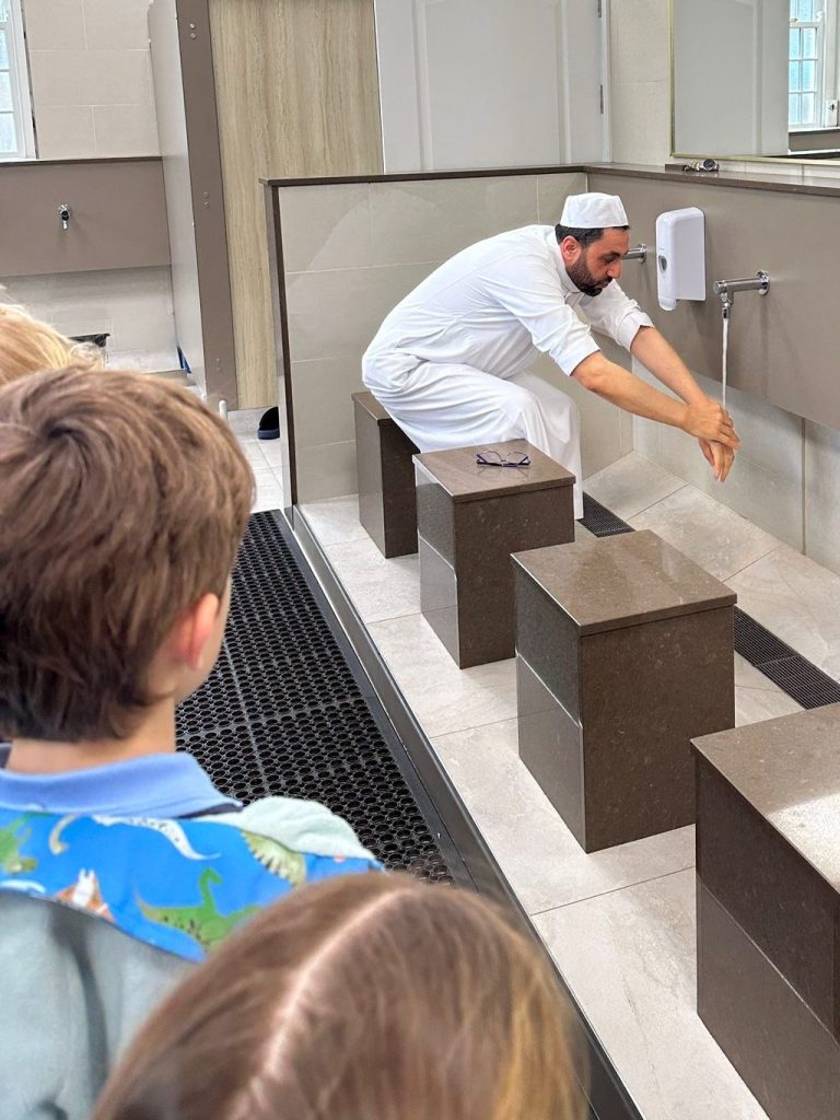 Lors de cette visite, les élèves ont pu observer comment les musulmans prient. Des démonstrations à l’intérieur de la mosquée ont permis d’expliquer les pratiques religieuses quotidiennes et l’importance du Coran. Ils ont également été initiés aux ablutions rituelles (wudu), effectuées avant la prière, afin de mieux comprendre les coutumes de la vie islamique.