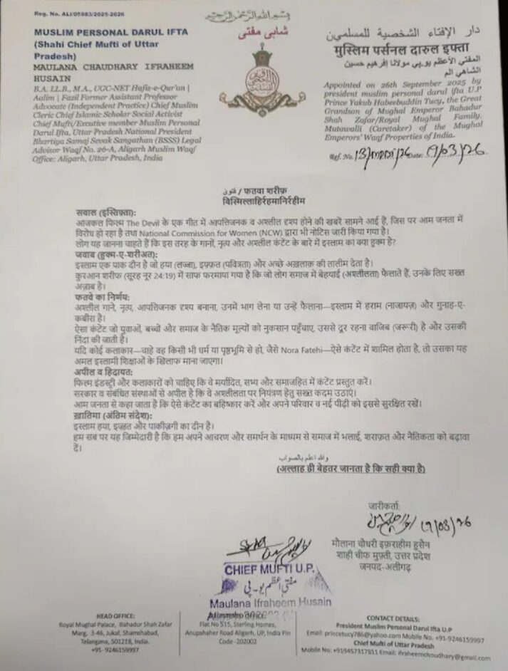 Fatwa émise contre Nora Fatehi à propos de la chanson