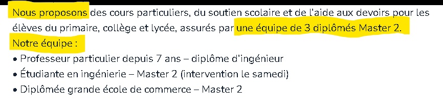 Ce qui frappe d’abord dans l’exemple ci-dessus, c’est le glissement sémantique. On ne parle plus seulement de « cours à domicile », mais de sessions organisées faisant intervenir « plusieurs enseignants ».