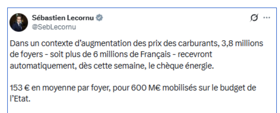 Elle a raison. Ils savent que les plus modestes ne pourront pas supporter les conséquences de leurs politiques d’écologie punitive où le gaz, l’électricité et le carburant sont surtaxés DANS LE BUT DE NOUS FAIRE LA MORALE. Alors, ils leur font des chèques, tandis que les vaches à lait paient plein pot ! D’ailleurs, j’en ai profité il y a 8 ans, si mes souvenirs sont bons, à un moment où j’étais au chômage temporairement et ce, alors que mon compte bancaire était loin d’être à sec, juste parce que je touchais 1200 euros par mois d’indemnités pendant cette période…