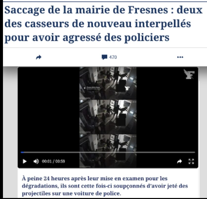 « Saccage de la mairie de Fresnes : deux des casseurs de nouveau interpellés pour avoir agressé des policiers » !
