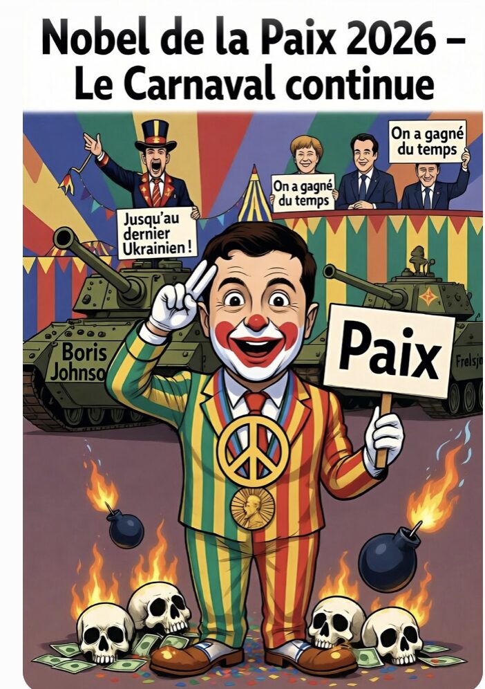 Tiens, c’est carnaval ! Zelensky nominé pour le prix Nobel de la paix ? Un va-t-en guerre qui reçoit le prix Nobel de la paix c’est au mieux une plaisanterie, au pire une gifle mise à chaque Européen !