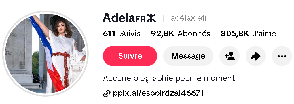 Ci-dessus : capture d’écran de son compte Tik Tok
