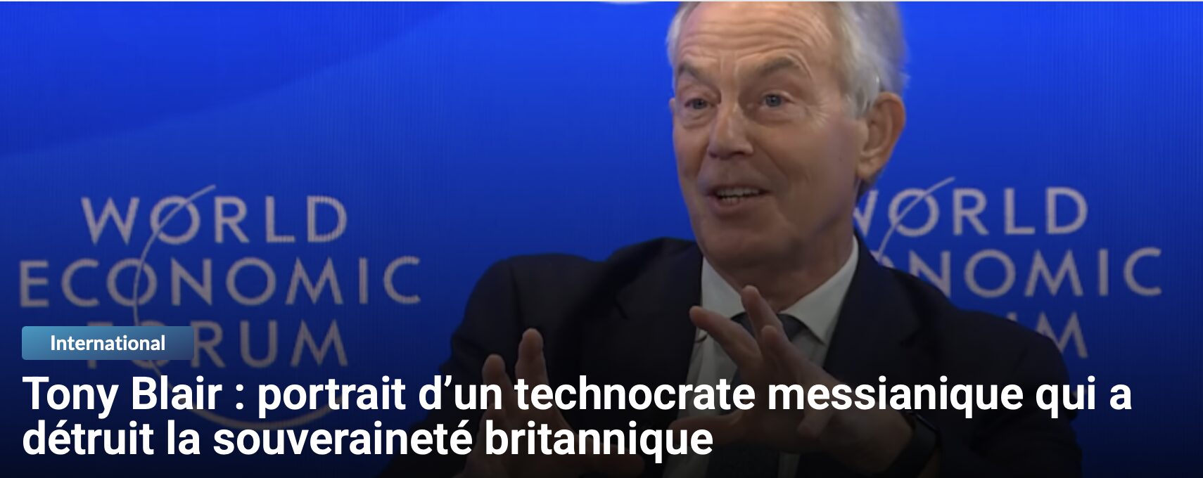 Blair incarne cette élite progressiste qui a imposé le post-nationalisme aux peuples européens contre leur gré, au nom d’une morale universaliste qui n’était qu’un cache-sexe pour la destruction des nations. Vingt ans plus tard, les Britanniques en mesurent encore les conséquences.