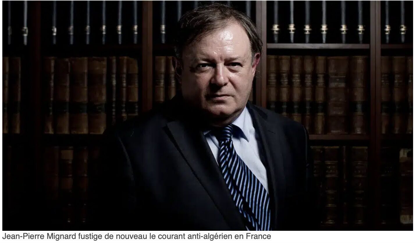 L’avocat français Jean-Pierre Mignard est connu pour ses positions anticolonialistes et en faveur d’une relation apaisée avec l’Algérie. (Note de Christine Tasin : il est aussi le parrain de 2 des enfants de Hollande et Royal… Rien ne se perd, tout se transforme...)
