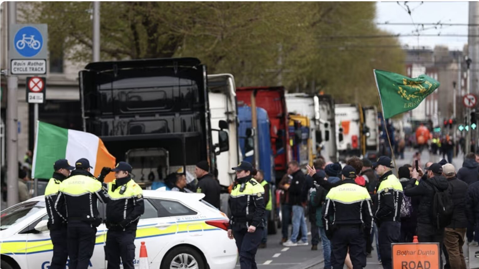 La police irlandaise face aux manifestants et aux camions bloquant les rues du centre de Dublin