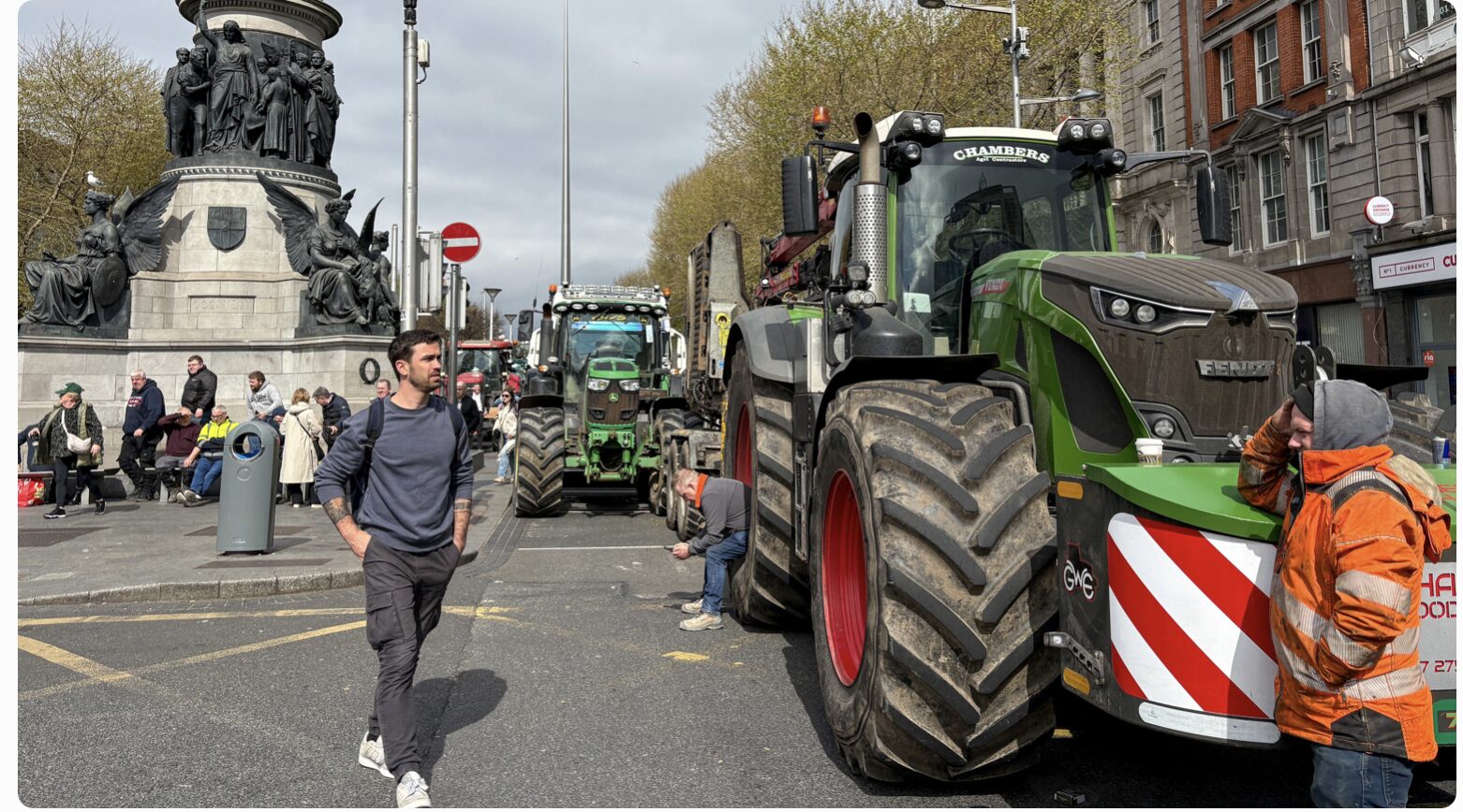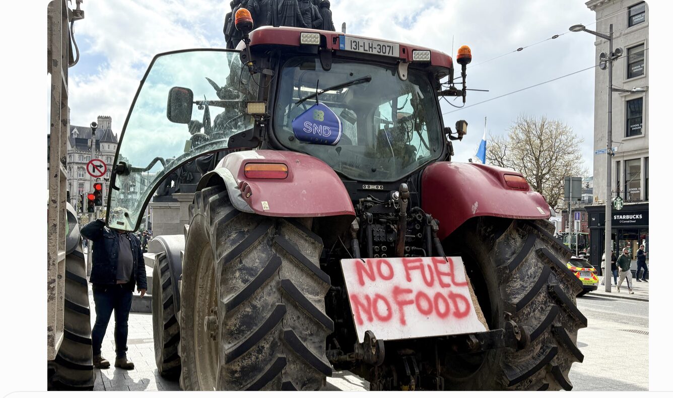 Depuis le 7 avril, l’Irlande est secouée par un mouvement de protestation d’une ampleur inhabituelle. Des agriculteurs, des routiers, des entrepreneurs agricoles et des transporteurs bloquent les routes, les dépôts de carburant et même la seule raffinerie du pays (Whitegate, qui fournit environ 40 % du pétrole national). À Dublin, des convois de tracteurs et de poids lourds ont paralysé le centre-ville, notamment l’emblématique O’Connell Street, pendant plusieurs jours. Des opérations escargot ont aussi ralenti la circulation sur les autoroutes.