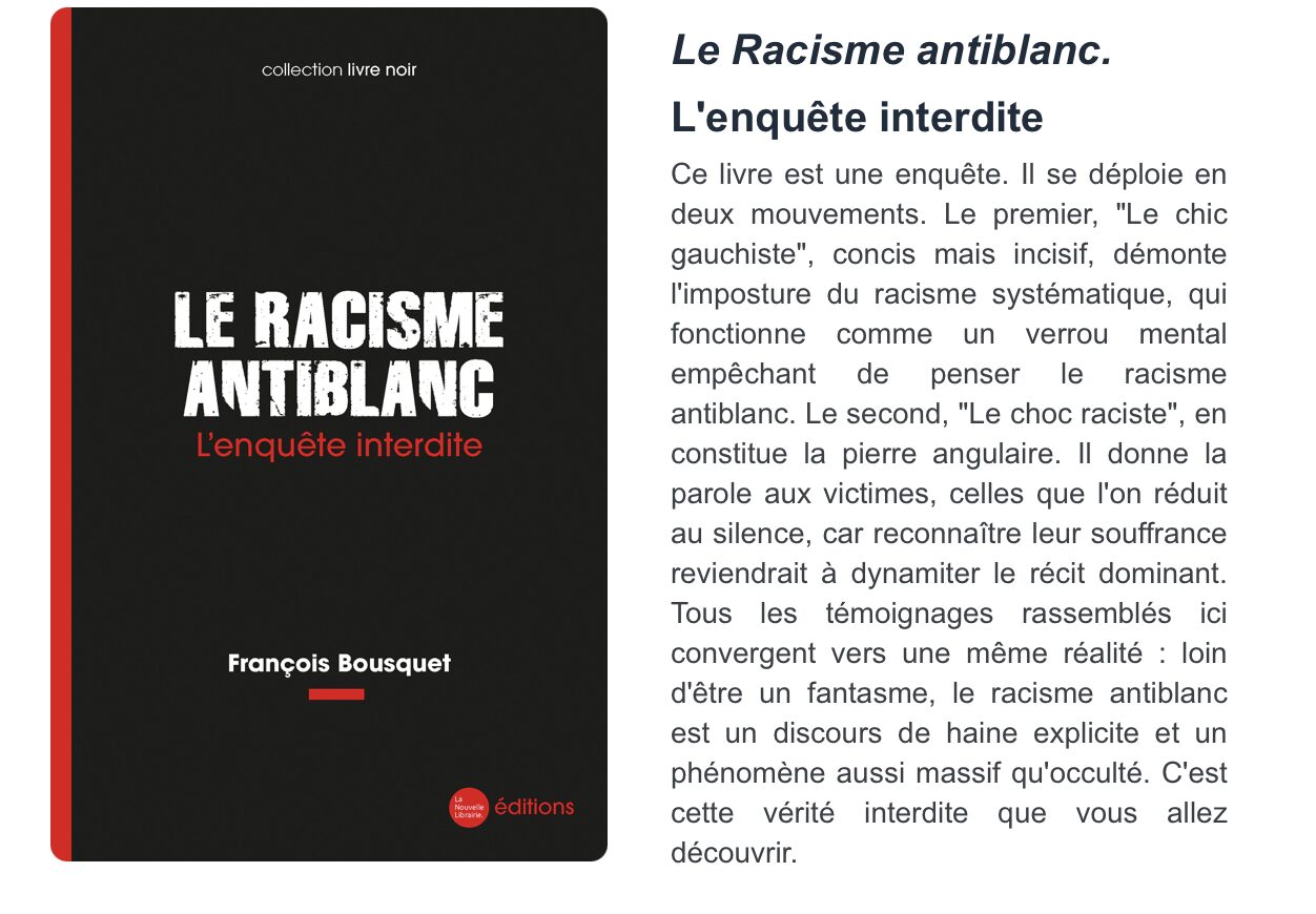 Pourtant, cette douloureuse réalité touche un nombre grandissant de Français. Agressions, insultes, viols… Cette forme particulière de haine raciale existe bel et bien. Mais aux yeux de ses détracteurs, affirmer en être victime est une erreur : c’est refuser le sacro-saint vivre-ensemble, érigé en valeur suprême de la société multiculturelle.