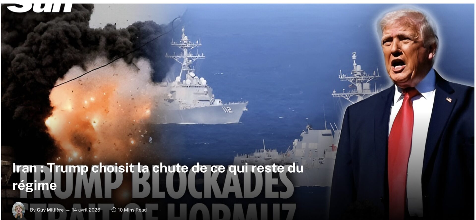 Trump met en place un blocus du détroit d’Ormuz (pour combien de temps, nul ne le sait, mais cela ne durera pas très longtemps, je pense) : ou bien tous les bateaux passent, ou bien aucun bateau ne passe, et surtout pas les bateaux chargés de pétrole iranien. Et si ces bateaux ne passent pas, le régime iranien sera asphyxié financièrement, et la Chine sera très pénalisée. C’est ce qui se dessine et ce que veut Trump.