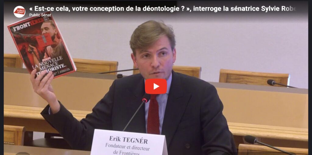 Le point de rupture de l’audition intervient avec l’intervention de la sénatrice socialiste et rapporteur de la commission, Sylvie Robert. Elle aborde frontalement les critiques visant les pratiques éditoriales de Frontières, rappelant que le média « fait l’objet de plusieurs plaintes au Conseil de déontologie journalistique et de médiation ». Puis elle évoque un cas précis : la diffusion par le média d’une vidéo montrant le vice-président du Sénat, Pierre Ouzoulias (communiste), lors d’une séance nocturne, victime de nausées. Un épisode ultérieurement mis en lien avec le syndrome de Gilbert, une maladie génétique pouvant provoquer des troubles digestifs en cas de fatigue ou de stress. Selon la sénatrice, la publication soulève plusieurs manquements déontologiques majeurs : atteinte à la vie privée, absence de contextualisation et non-respect du contradictoire. Elle interroge directement le dirigeant du média : « Est-ce cela, votre conception de la déontologie ? » Éric Tegnér reconnaît alors une « erreur », affirmant que la vidéo a été retirée des réseaux sociaux. Il explique s’être trompé sur l’appréciation de la portée de la diffusion et assure que des ajustements ont été engagés en interne. Mais les échanges se tendent davantage lorsque Sylvie Robert précise, après vérification : « La vidéo est retirée, mais l’information est toujours en ligne. Nous avons une capture d’écran avec une photo de notre collègue et une mention de ce qui s’est passé ». Le président de la commission, Laurent Lafon, renchérit sur un point précis, soulignant une forme de déséquilibre dans le traitement éditorial : certaines mentions associées à la publication relient l’épisode à des positions politiques du sénateur, sans lien direct avec les faits initiaux ni mention du contexte médical. Sylvie Robert insiste alors et demande un engagement clair : « Est-ce que vous pouvez vous engager à retirer cette photo et cette annonce ? » « Oui, bien entendu », répond-il. Mais la rapporteure poursuit, mettant en cause la cohérence entre les principes de déontologie revendiqués par le média et ses pratiques : « Est-ce que vous trouvez que déontologiquement vous êtes cohérent ? Vous avez fait un exposé sur le contradictoire et la vérification des sources… » Face à ces critiques, le fondateur de Frontières maintient avoir agi dans un cadre journalistique, tout en reconnaissant la nécessité de corrections. Il défend cependant son média en dénonçant une hostilité croissante à son égard dans le débat public : « Il y a un problème. Il y a un danger aujourd’hui dans ce pays, c’est qu’on va qualifier très facilement des journalistes de nazis », affirme-t-il, en conclusion d’un échange particulièrement tendu.