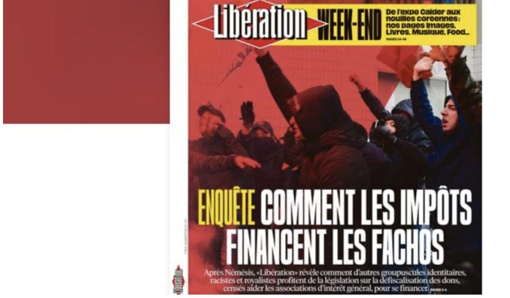 Donc, l’angle d’attaque des deux antifas déguisés en journaleux Maxime Macé et Pierre Plottu est fort simple et très manichéen. Les deux loustics considèrent que les déductions fiscales de 66 % qui profitent à toutes les associations jugées d’intérêt général sont légitimes quand les bénéficiaires sont de gauche, mais qu’elles représentent un détournement public, « parce que l’extrême droite raciste et fasciste ne saurait se prémunir de l’intérêt général ». Et ils commencent à cibler Némésis. Le but est fort simple : asphyxier économiquement les associations patriotes, déjà harcelées judiciairement, en proposant au gouvernement de faire des économies sur leur dos.