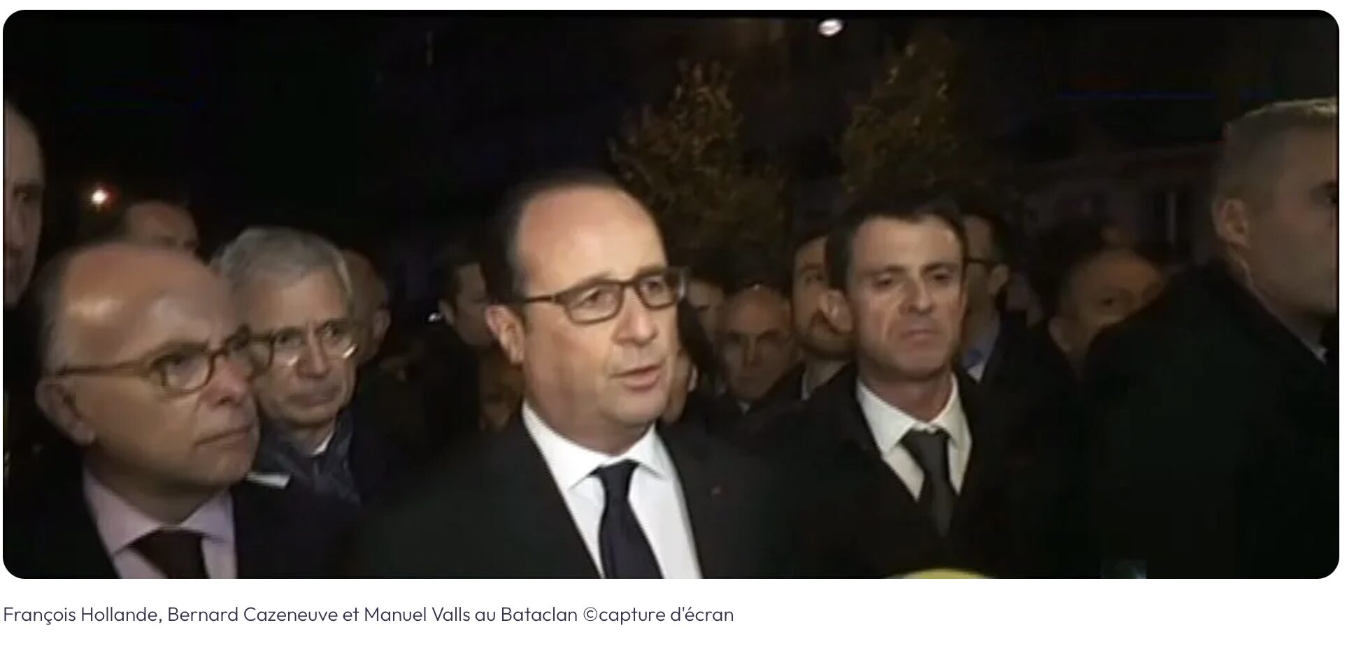 Pourtant, ils étaient mouillés jusqu’au coup dans la boucherie du Bataclan, Hollande, Cazeneuve et le bras cassé de Valls, le petit coq arrogant qui avait reçu quelques jours avant l’attentat un avis des services secrets syriens les prévenant qu’il se préparait un énorme attentat sur Paris. Valls qui méprisait les Syriens et Bachar avait jeté le papier à la poubelle…